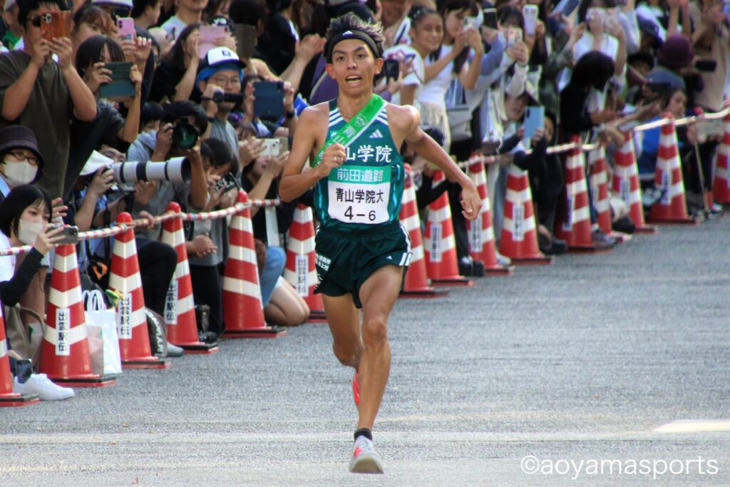 迎えた最終区、アンカーの大役を担ったのは黒田朝日。塩出から襷をもらった時点で約20秒先を3校の選手が走っていた。狙った獲物は逃さないと言わんばかりに一校一校着実に捕らえ、順位を押し上げていく。「黒田なら」という観客の期待に確実に応え、超えていく。「俺が青学を勝たせる」を体現する走りで29分15秒をマークし、見事区間賞を獲得した。