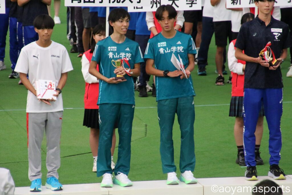 7位入賞、区間賞獲得、共に登壇した左から黒田・塩出
