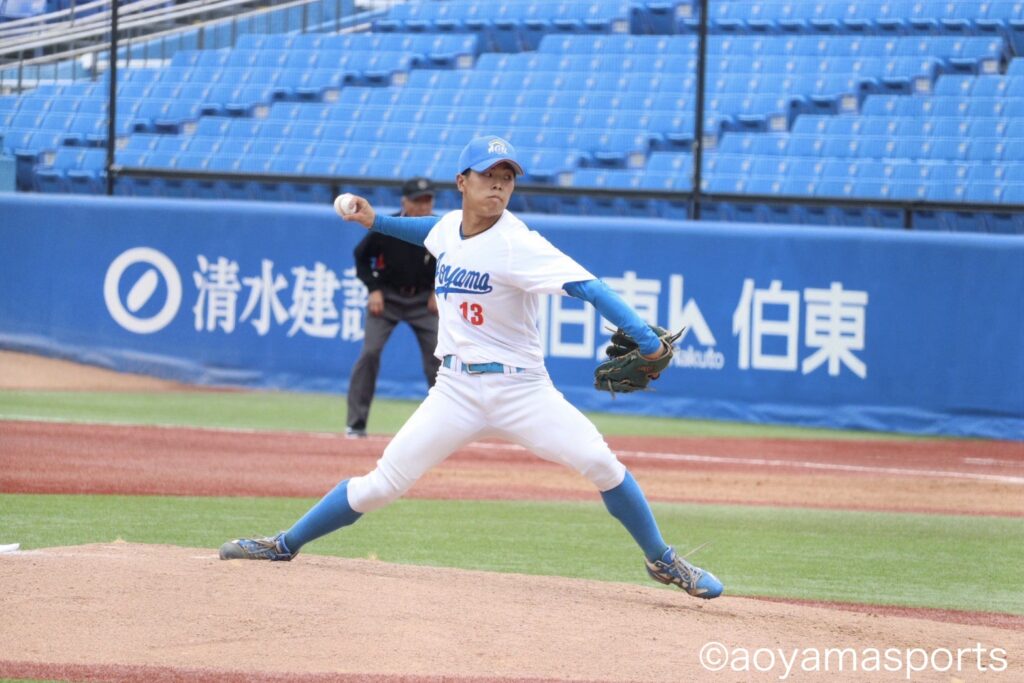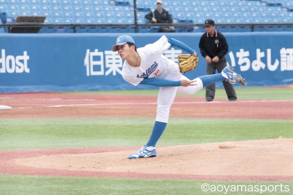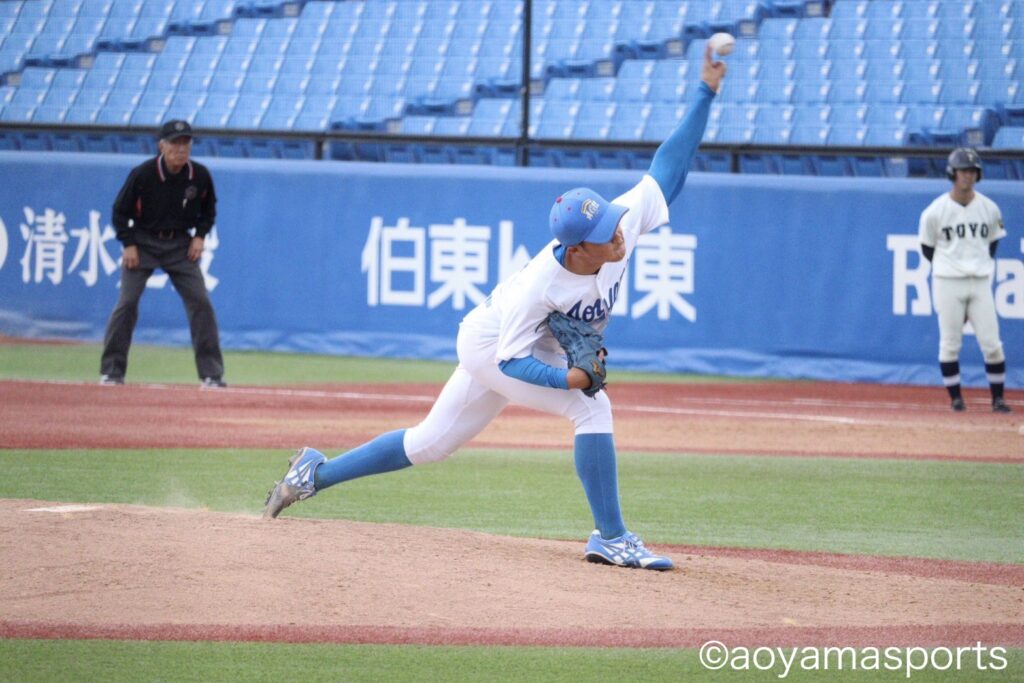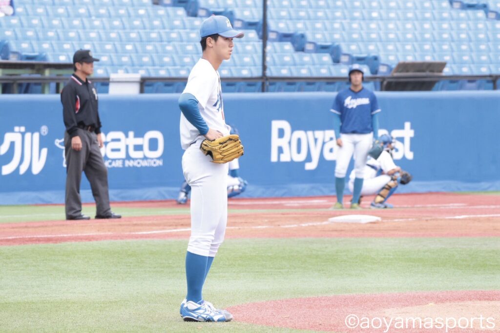 青学大は完封勝利を挙げた駒大戦に続けて第1戦の先発を鈴木に任せた。鈴木は初回、ストレートを中心に三者凡退の立ち上がりを見せた。