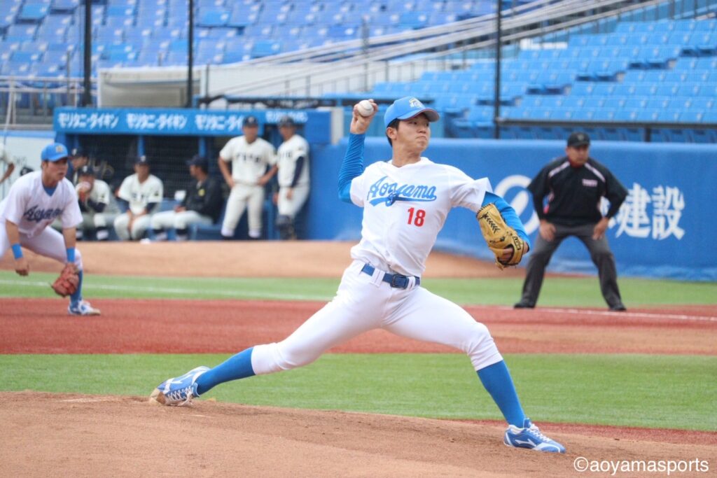 青学大の先発は中1日で登板の鈴木。前回登板は、3回5失点と苦しい投球となっていた。その鈴木は初回、三者凡退に抑える上々の立ち上がりを見せた。