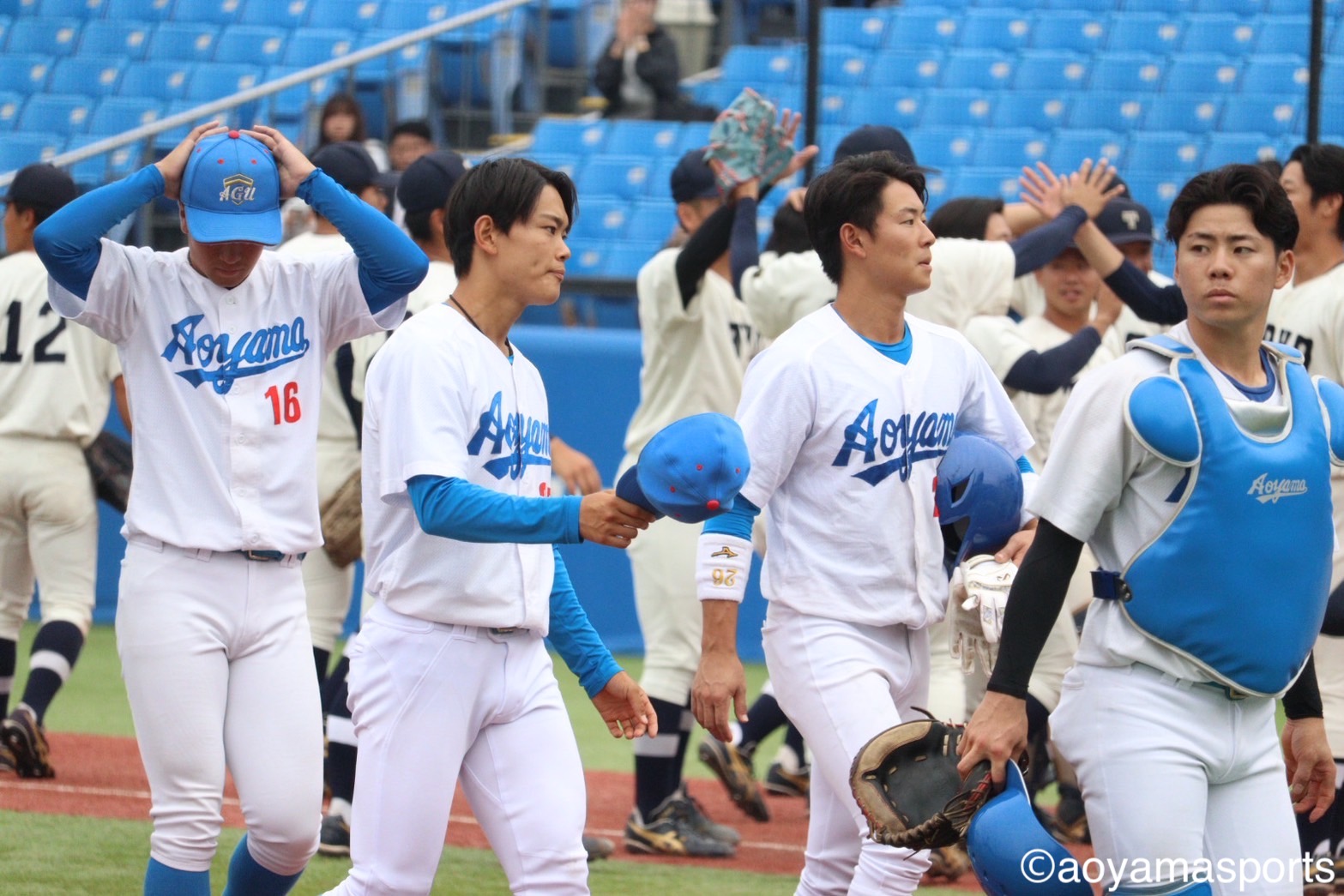 そして9回、青学大は先頭の谷口が安打で出塁すると、続く大神が四球を選び無死一、二塁のチャンスを作る。しかし、この回も本塁が遠い展開が続き無得点。青学大は0-4で敗戦し、2024年春以来3季ぶりに勝ち点を落とした。