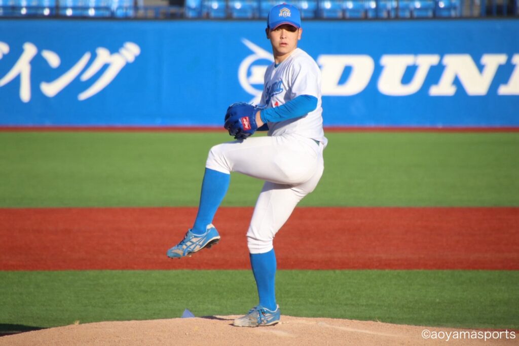 安定感のある投球で、テンポよくアウトを重ねていく。立命大の迫力のある応援にも決して負けず、アウトカウントを重ねる。