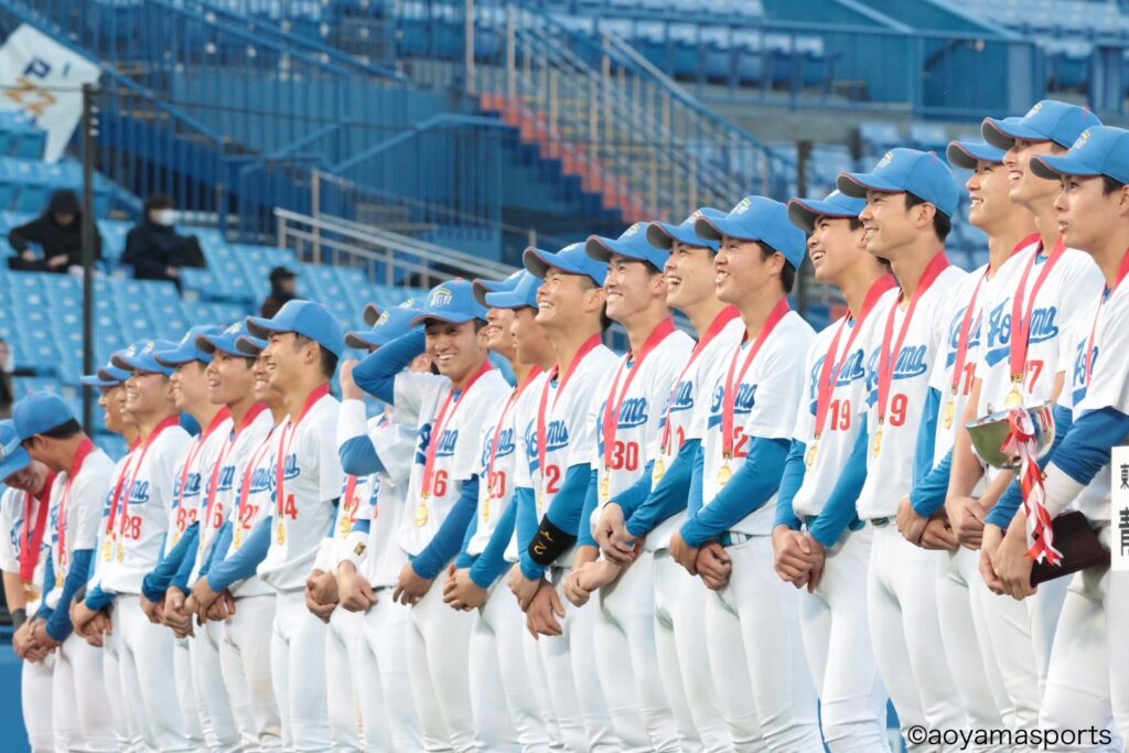 優勝の要因を問われた安藤監督は、「ごまかさない」という言葉を真っ先に挙げた。この1年、青学大は自分にも仲間にも決して嘘をつかないチームだった。時にはぶつかり合い、悩み、涙することもあった。それでも誰ひとり隠れることなく、全員で成長し続けてきた。藤原主将も、チームの前に立つ難しさ、全日本選手権で負けた悔しさに悩み続けたという。しかし副将の初谷健心(総4=関東第一)らと何度も話し合い、4年生を中心に“強く、正直なチーム”を築き上げてきた。今日の優勝は、その積み重ねの結晶だ。ぶつかって、悩んで、たどり着いた最高の景色。青学大野球部、そして大学野球界に“藤原世代”の名は深く刻まれる。