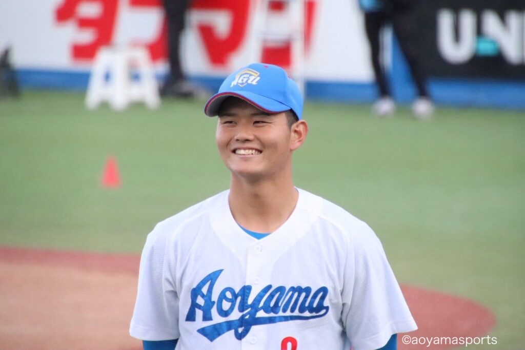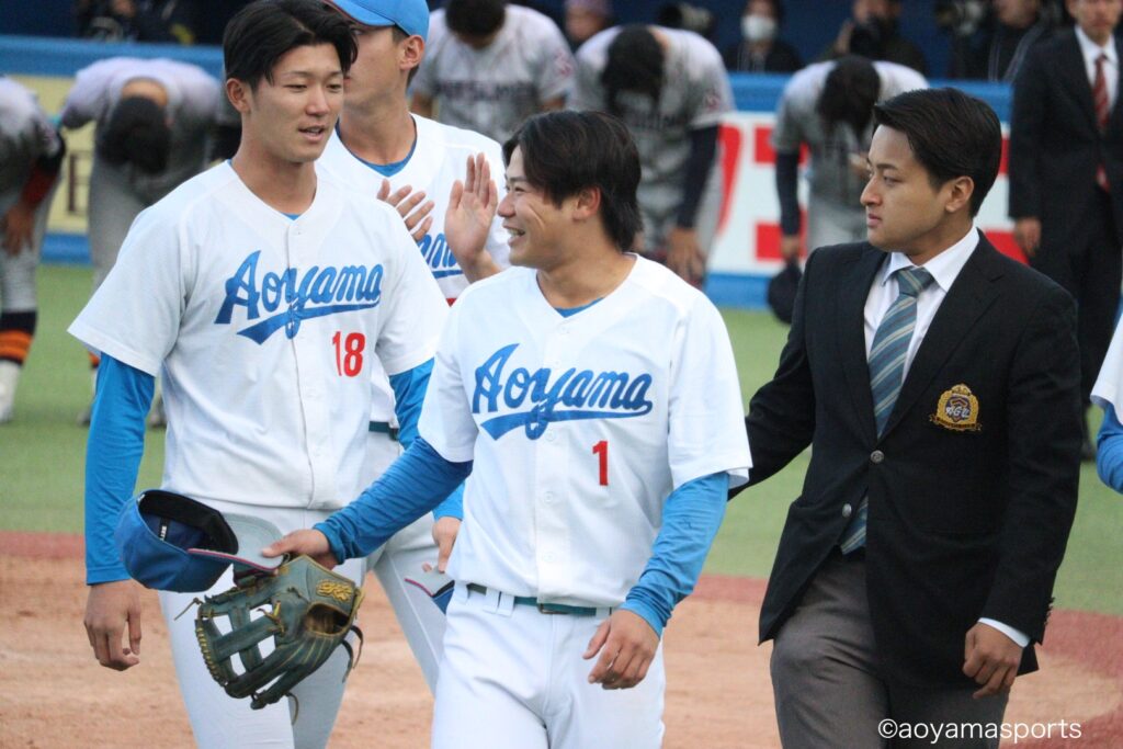 「4年間の集大成として、本当の意味で最上級生としてこのチームを背負ってっていう、本当の意味で投げるのは今年になってからだと思いますので、この1年間の積み重ね見て、マウンド上でのその立ち振る舞いとか、日々の練習の中で、キーになるところで口数多いやつじゃないんですけど、ピッて集めて、ピッチャーだけで話したりだとか、そういったことをしてきたので、僕も自信を持って、送り出したというか、この最後のゲームを託せるなっていうところで送り出させてくれたっていうのが、一番だと思います。」