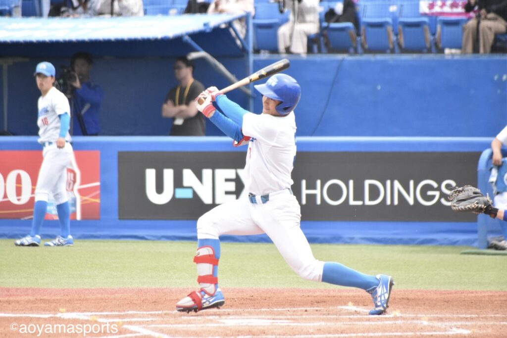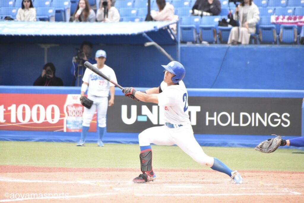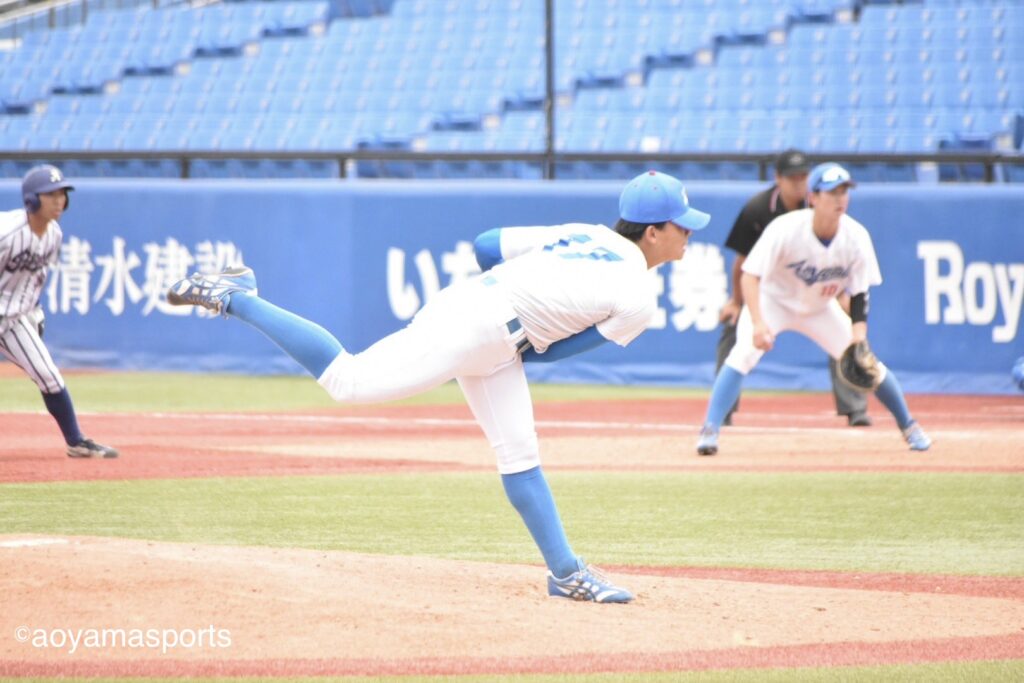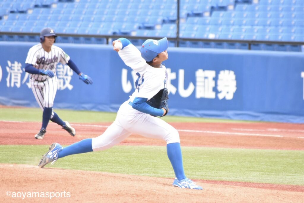 先発・田端は前節で中大打線を前に6回無失点の好投を披露した。この試合も1回、2回と落ち着いた立ち上がりで、相手打線をテンポよく打ち取る。しかし3回、一死からソロ本塁打を浴び、手痛い先制点を奪われる。