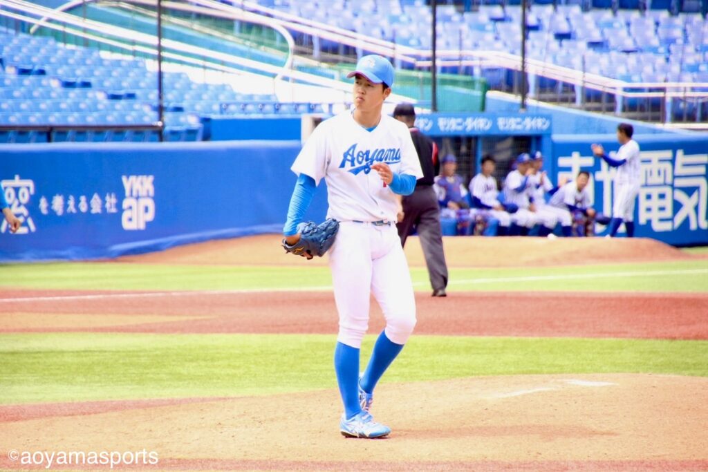 先制を許した青学大は、いい当たりは出るものの、安打にならない苦しい展開が続く。打線が繋がらず、反撃に出られないまま5回の攻撃を終え、試合は後半に差し掛かった。