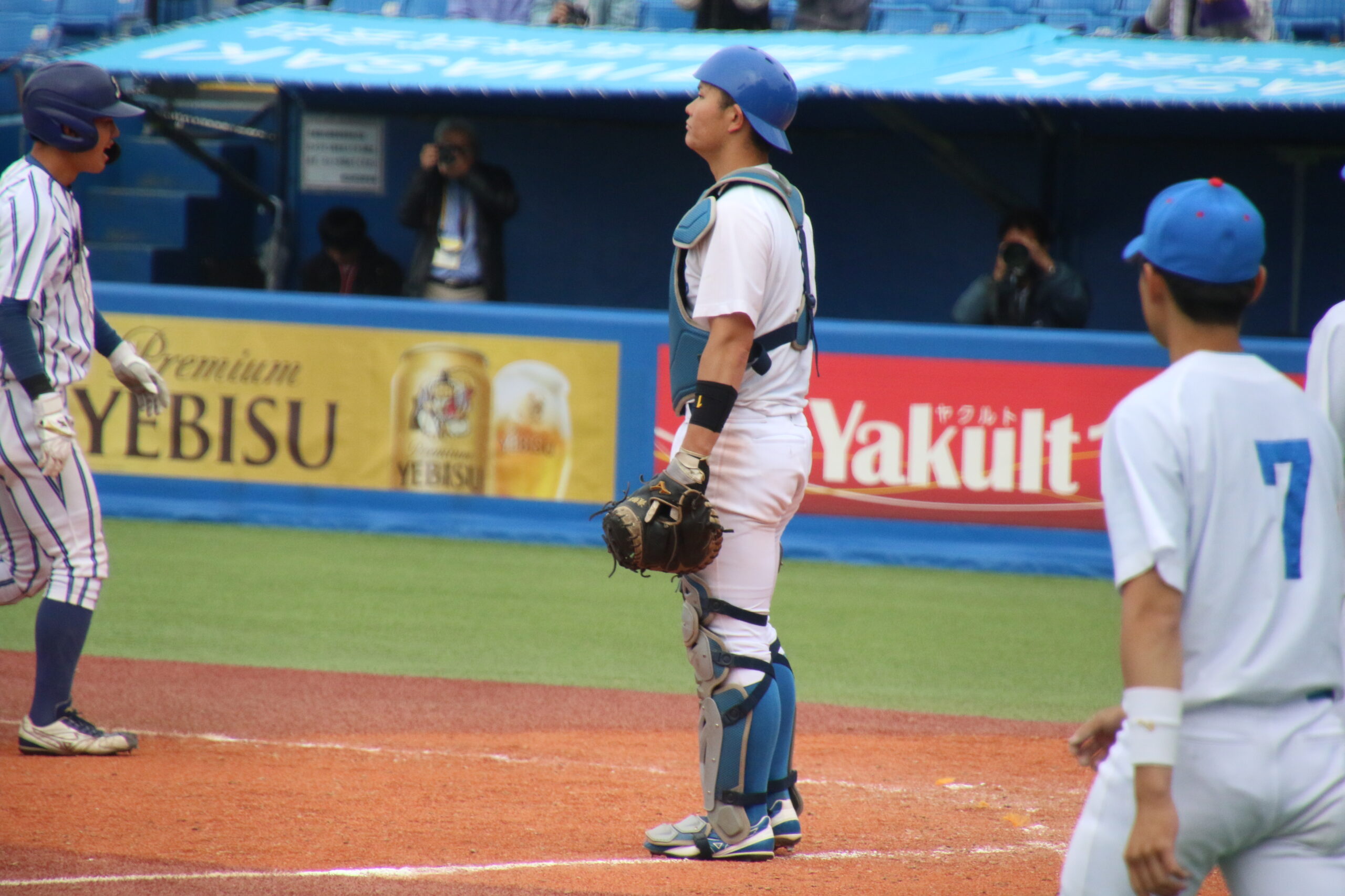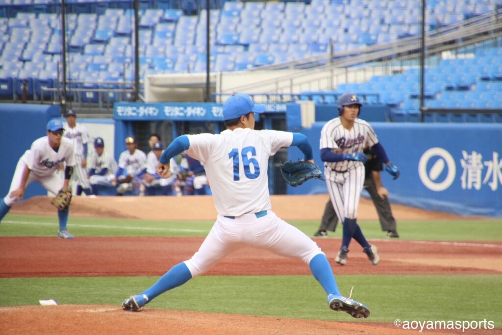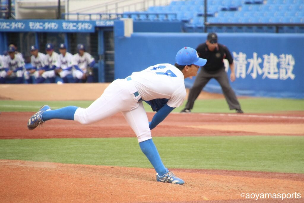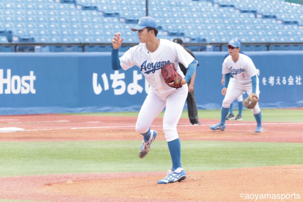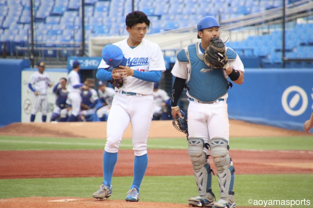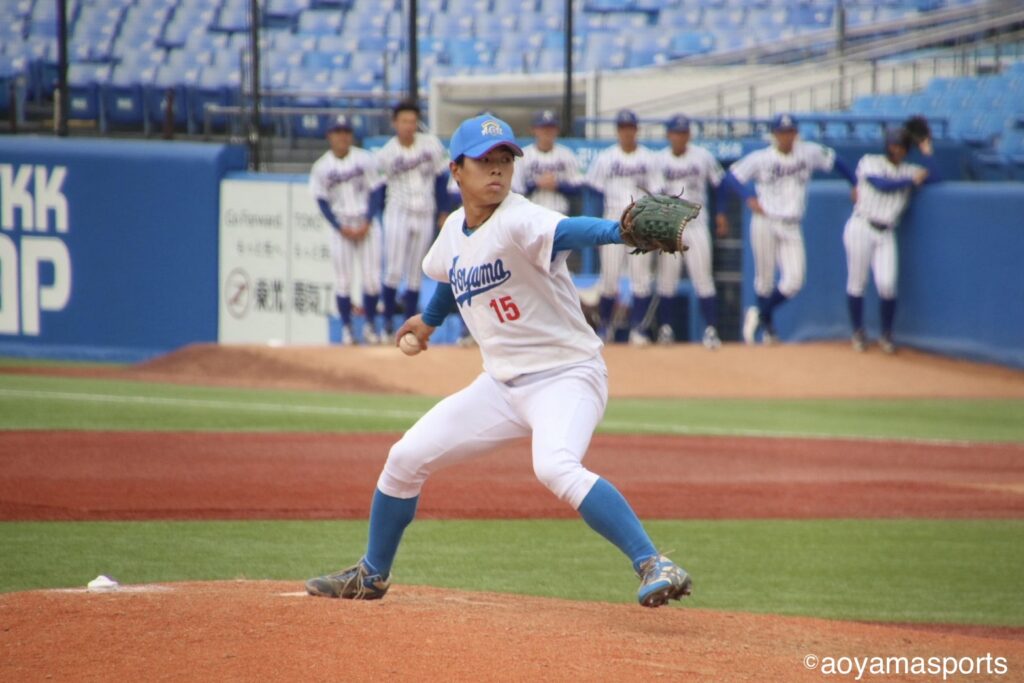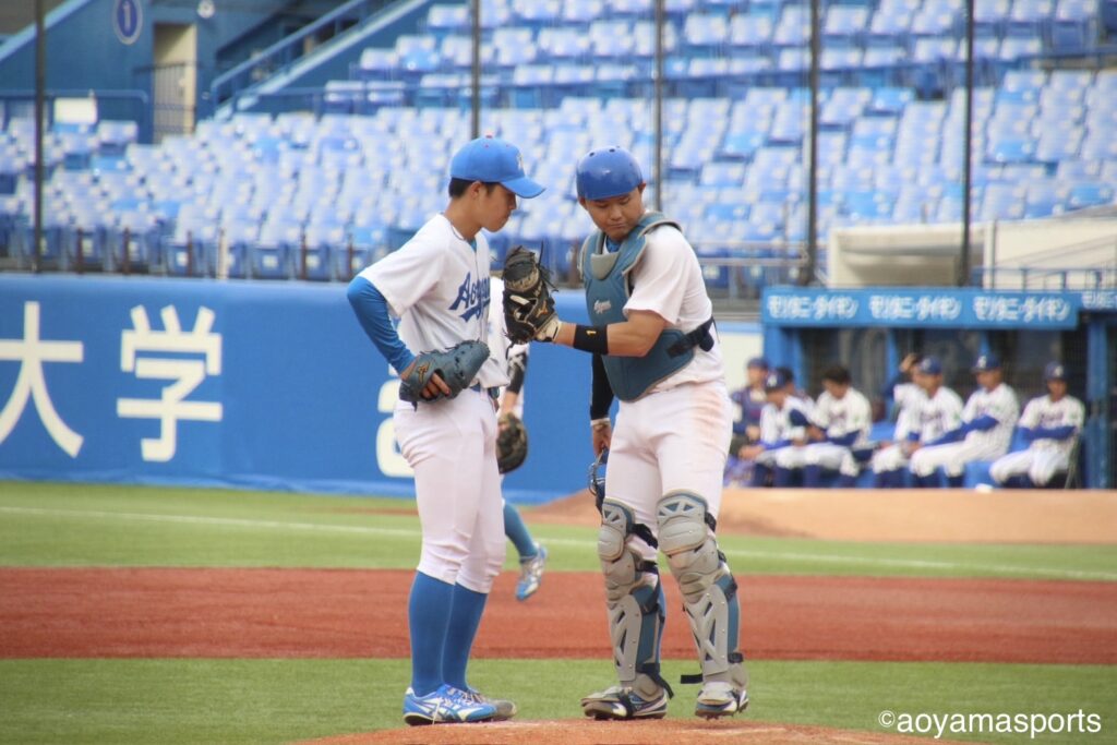 追加点が欲しい青学大は7回、四球で出塁した走者を得点圏に進める。二死二塁で打席には中山。ここで立正大は好投を続けていた仁田に代え、専大松戸高出身で中山の1学年後輩にあたる田中昇之介をマウンドへ送る。しかし、右アンダースローの田中を前に中山は三振に倒れ、追加点とはならなかった。