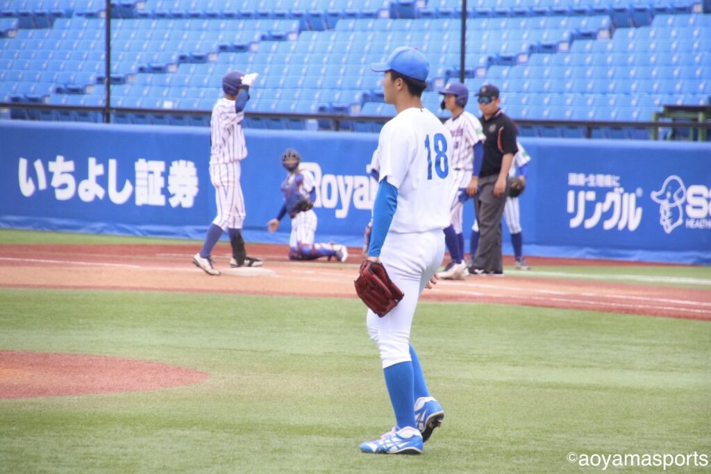 11回裏、先頭打者に犠打を決められると、田端は三塁へ送球を試みるも、ベースカバーが入っておらずオールセーフ。無死満塁とピンチが広がる。ここで青学大は髙木にスイッチ。しかし、髙木は右前へ適時打を浴び、試合はここで決着。青学大はサヨナラ負けを喫した。