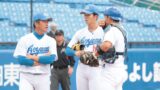 昨日大勝で初戦を白星で飾った青学大。今日の試合は緊迫した投手戦となり、苦しい試合展開が続いた。しかし、終盤に1チャンスをモノにして青学大が逆転に成功した。接戦を制し、開幕の2連戦を連勝で飾った。