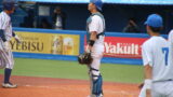 中西は2回以降、亜大打線から三振の山を築く快投を見せていたが6回、二死一、三塁のピンチを招くと亜大6番・山里の放った打球はショートへの内野安打となり勝ち越しを許した。